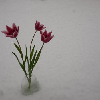 このチューリップの魅力がお分かりでしょうか?茎がとても細く華奢な雰囲気、そして何とも美しい立ち姿。自宅に飾っていますが、見るたびに美しい!と思ってしまうチューリップです。チューリップはつぼみの時から色が乗っていく感じや開いた姿、曲がりくねっている姿や散り際など、表情の変化がとてもあるお花です。チューリップだけで飾るのが私は好きですね。