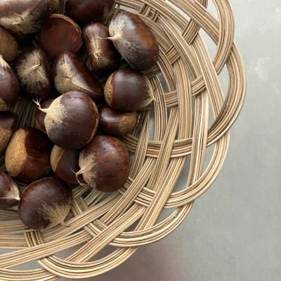 お花のお届けに行くと、自宅の裏山で採れた栗をと・・持たせて下さった。1年に1度伺うお客様ですが、私が来るので栗を外で日光に当てて準備して下さっていました。お花も食材も季節のものって、美しく輝いて見えます♪