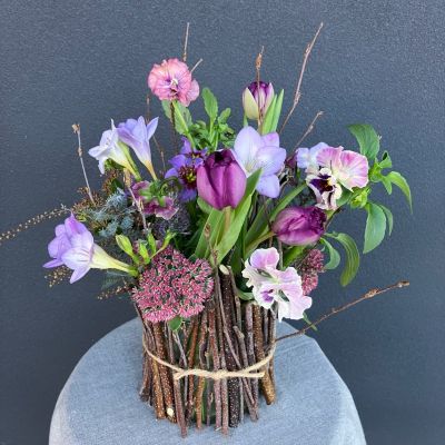 1月のレッスンのお知らせです。今月は白樺の枝を使い器を作り、春のお花をアレンジ致します。ぜひお待ちしております。